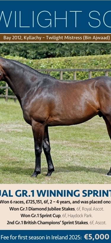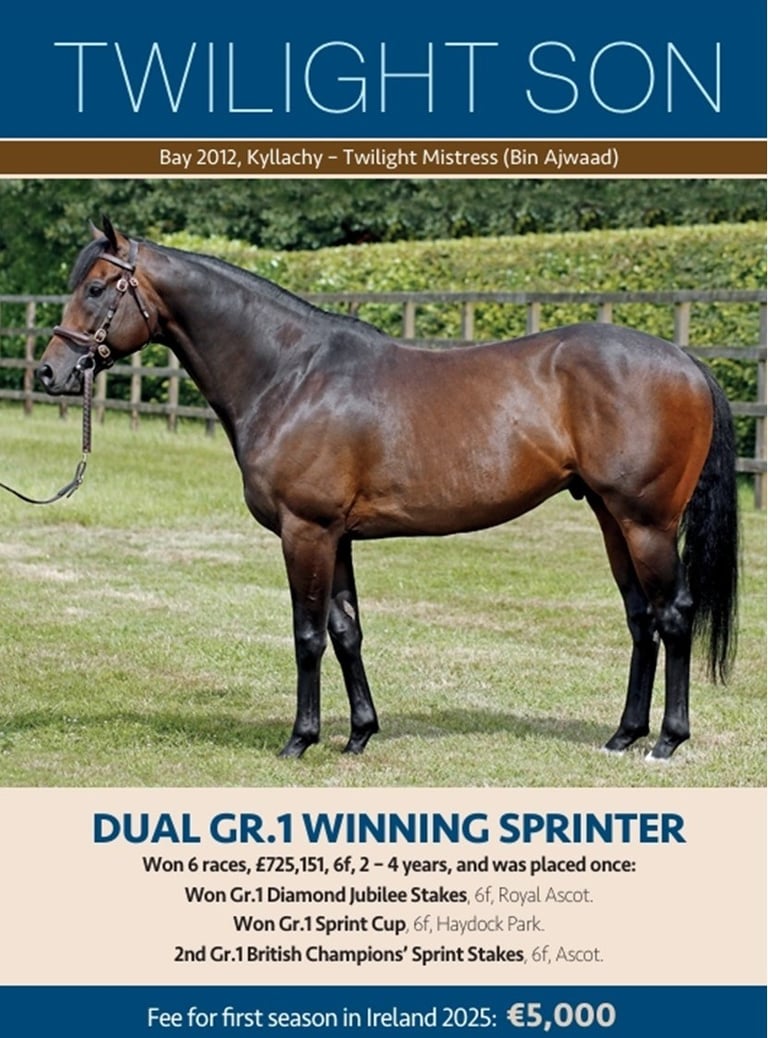 Highland Chief will stand for a fee of €2,500 and resides alongside champion sprinter and Group-winning sire Twilight Son.